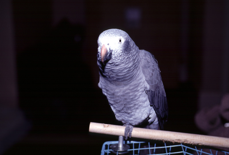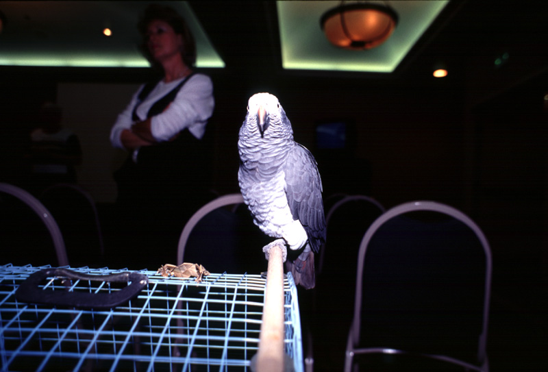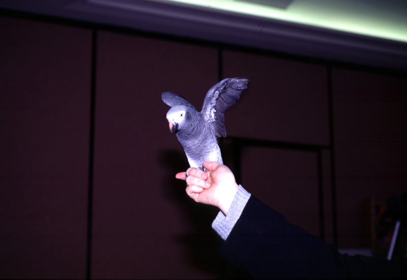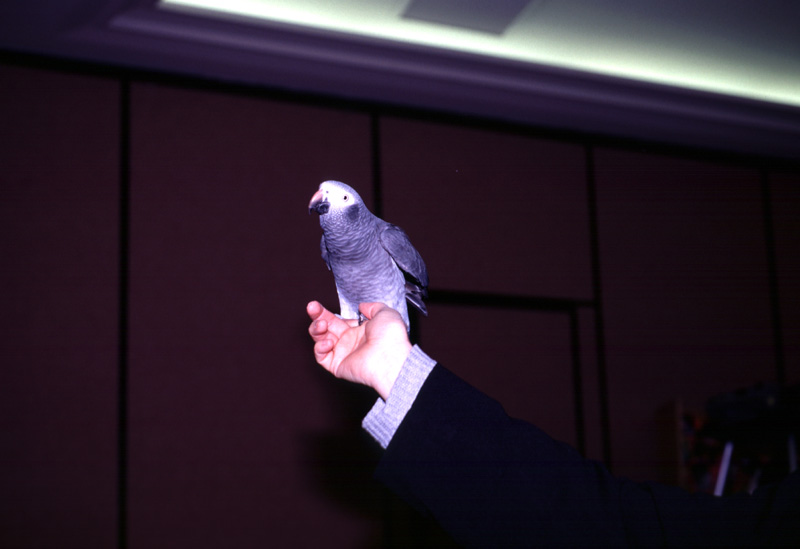 | Star of the seminar: Jing, female Timneh African Grey. |