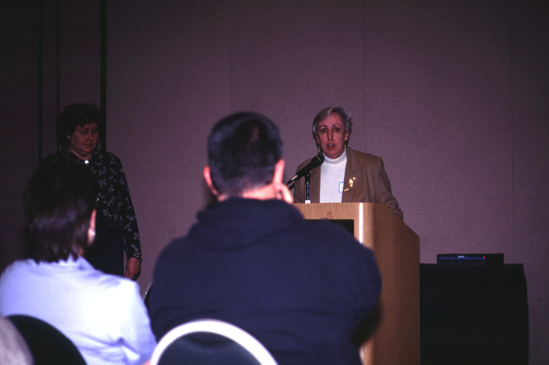 At the podium: Jane Hallander |