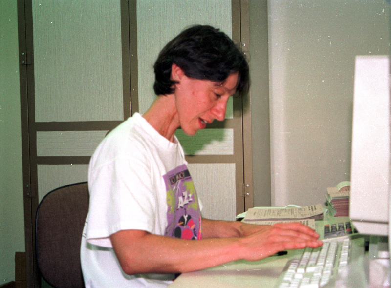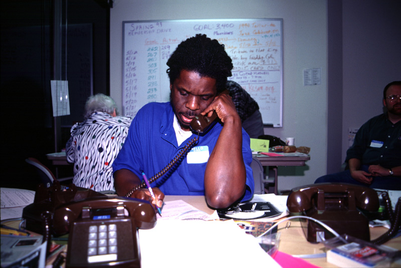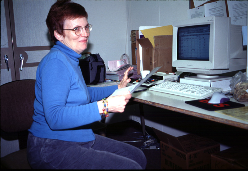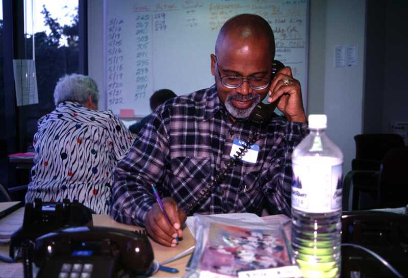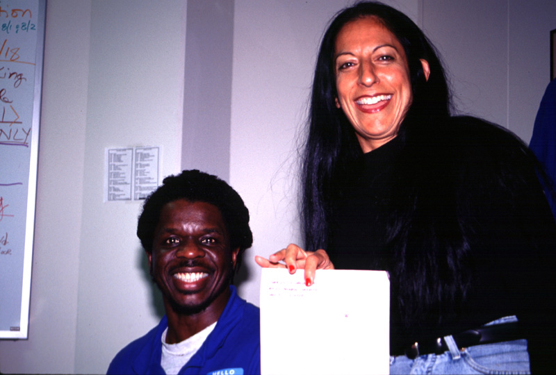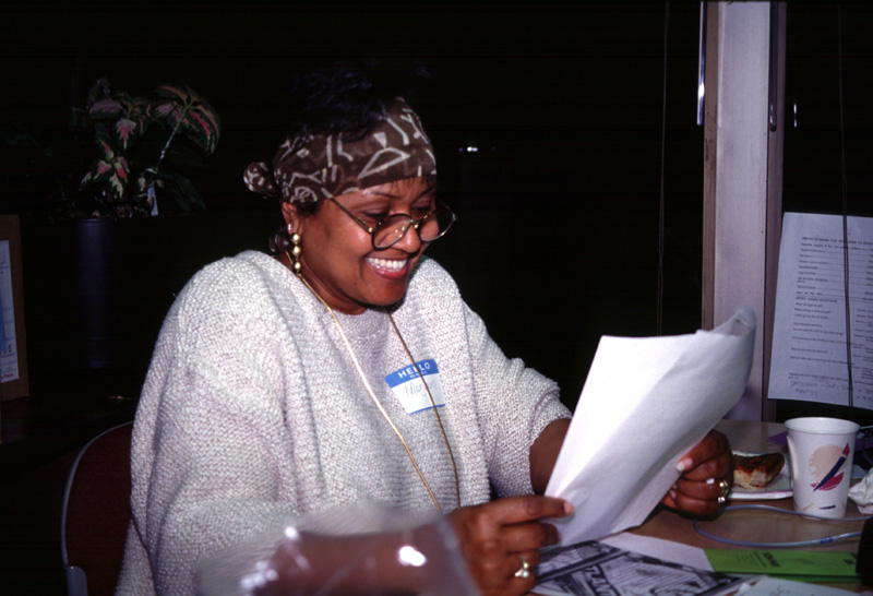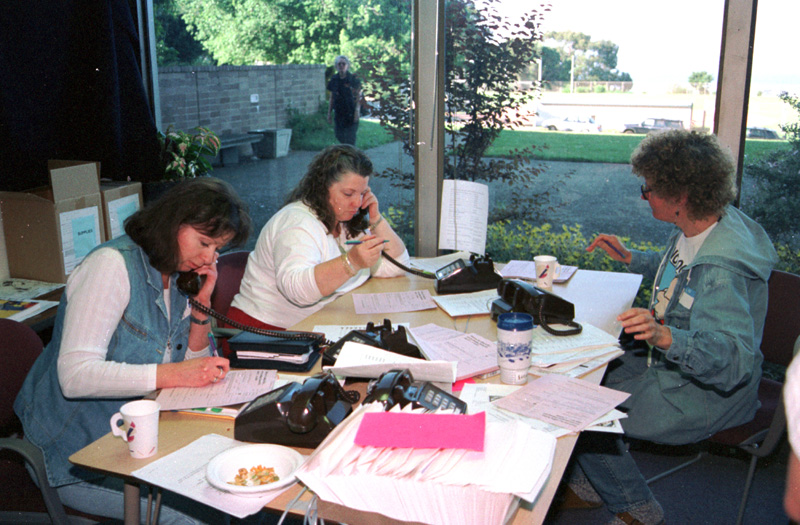 Volunteer delivers the pledge paperwork to Anne Weitzel. |